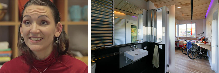 On pourrait croire que la vie en Tiny House est impossible pour les personnes à mobilité réduite se déplaçant en fauteuil, au simple regard de la taille des « toilettes handicapées » dans les espaces publics... Les toilettes occuperaient facilement la moitié du micro-logement, il serait inconcevable d’y faire tenir ensuite, un lit, une salle de bain, une cuisine et de l’espace de rangement. Mais une jeune femme passionnée de Tiny House, nous a prouvé le contraire - RENCONTRE avec Circée Peloux -